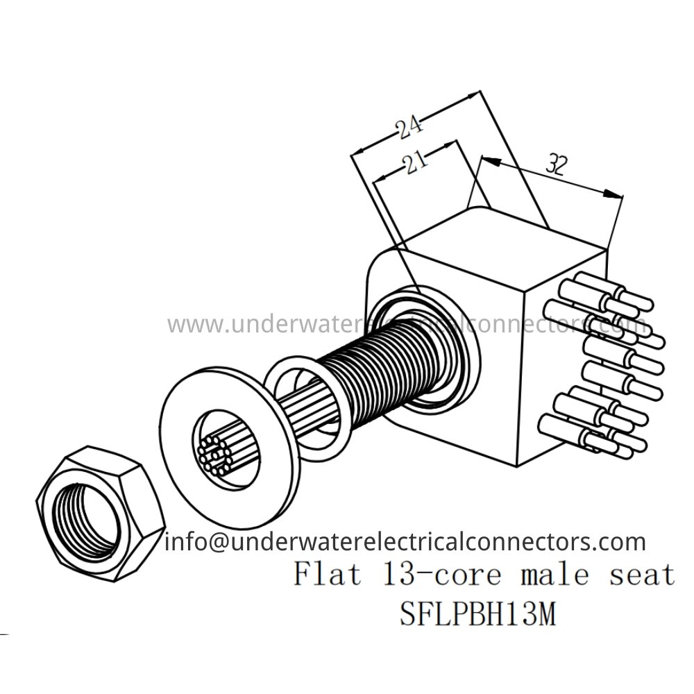 HYSF SFLPBH13M Standard Flat 13-Pin Male Bulkhead Underwater Connector