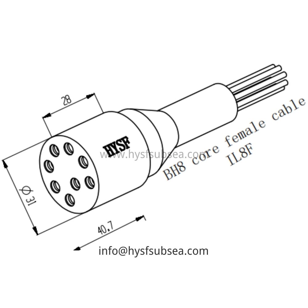 The HYSF IL8F is a durable standard 8-pin female inline watertight connector designed for secure high-density cable-to-cable links in harsh subsea environments. Perfect for multi-signal offshore power distribution, ROV umbilicals with extensive channels, underwater instrumentation, and marine cables needing long-term waterproof reliability. Precision-engineered with premium construction and advanced sealing, it withstands extreme pressures and corrosion at deep ocean depths. HYSF provides proven standard underwater watertight connectors for offshore exploration and marine applications from China.