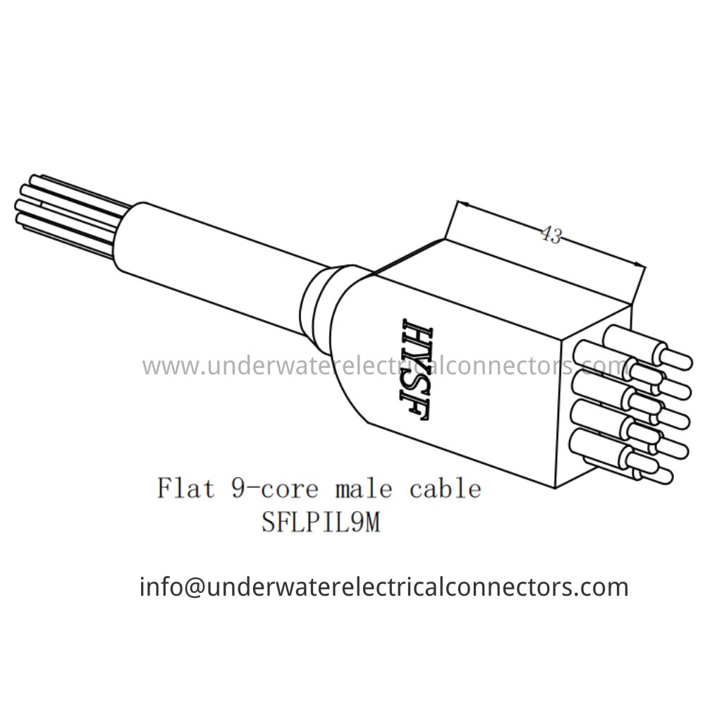 The HYSF SFLPIL9M is a robust standard flat 9-pin male inline watertight connector engineered for ultra-high-density multi-channel transmission in demanding offshore applications requiring low-profile flat cable termination. Ideal for sophisticated subsea flat panel systems, ROV high-channel control, underwater data hubs, marine robotics, and offshore equipment needing maximum compact waterproof connections. Built with marine-grade materials, gold-plated contacts, and durable flat housing, it delivers exceptional IP68 sealing and high pressure resistance for full ocean depth operations. HYSF provides high-quality standard flat subsea watertight connectors from China.