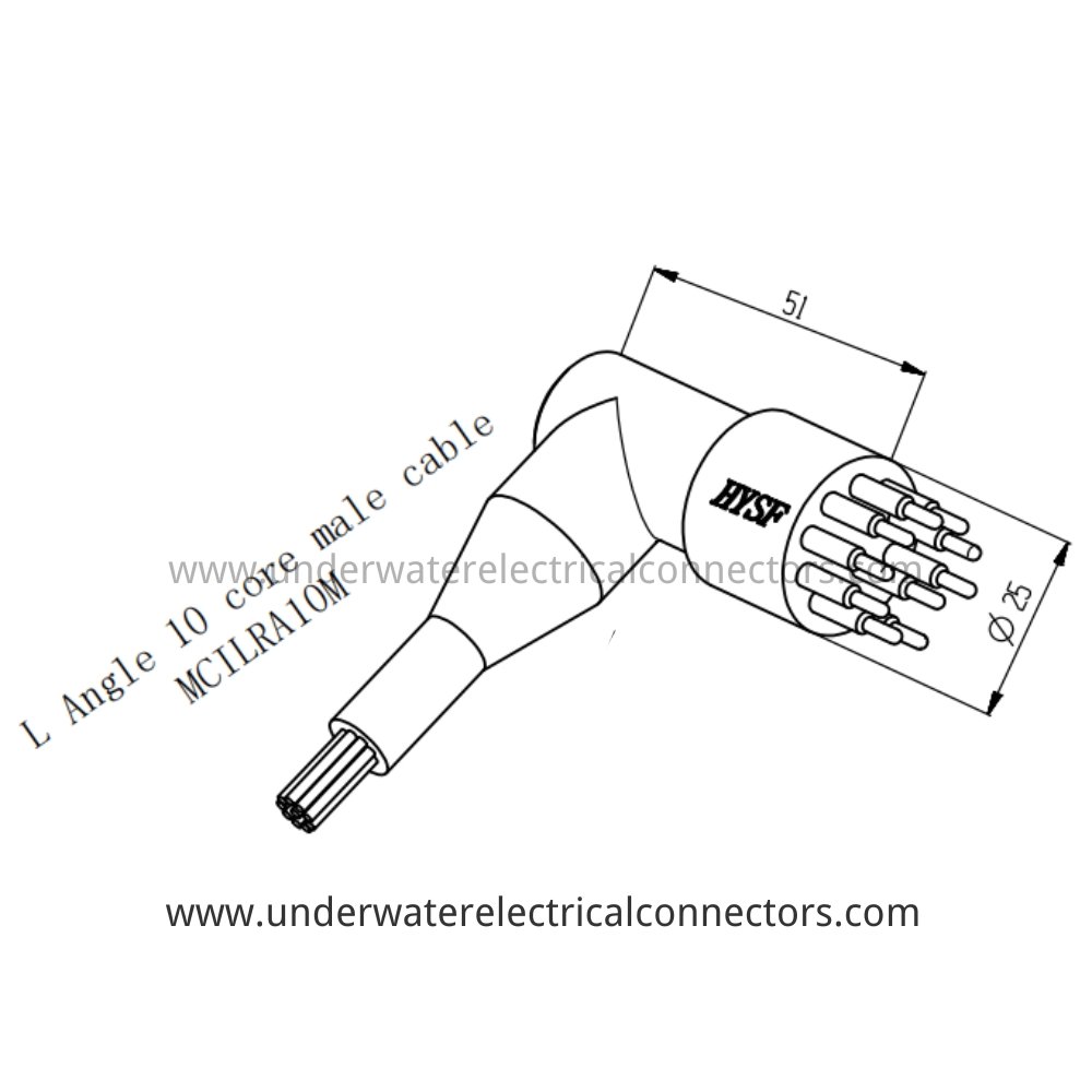 HYSF MCILRA10M L-Angle Miniature Circular 10-Pin Male Inline Underwater Connector
