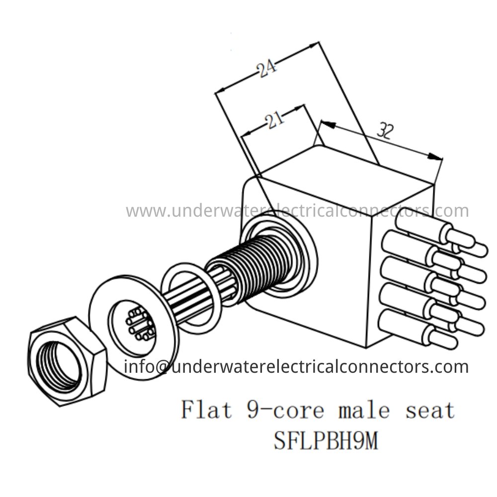 The HYSF SFLPBH9M is a rugged standard flat 9-pin male bulkhead watertight connector optimised for low-profile panel-mount through-hull installations in severe marine conditions with ultra-high channel density. Widely applied in offshore flat panels, subsea high-density housings, ROV advanced junctions, underwater monitoring systems, and marine vessels. Manufactured with corrosion-resistant materials and compact flat design, it achieves superior IP68 sealing and high pressure rating for deep ocean deployments. HYSF provides reliable standard flat subsea bulkhead connectors from China.