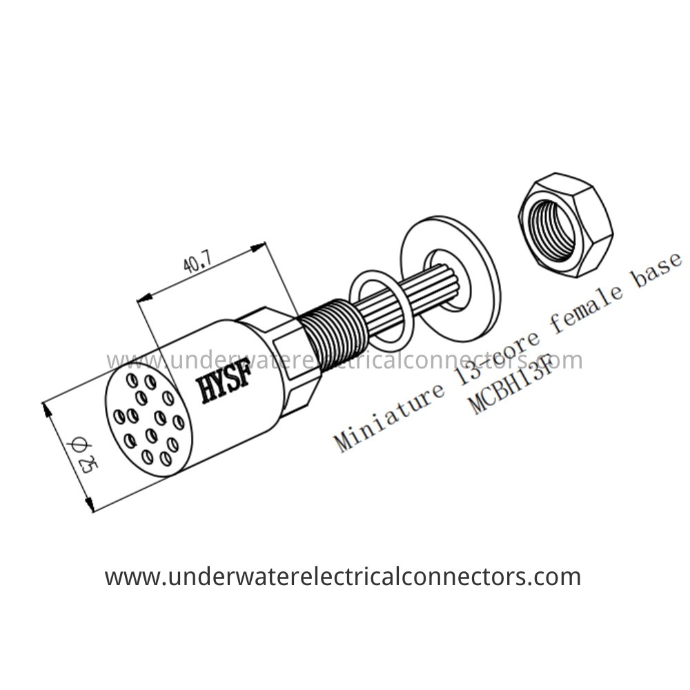 HYSF MCBH13F는 심해 맞춤형 시스템에서 패널을 안전하게 장착할 수 있도록 설계된 고성능 13핀 암 벌크헤드 방수 커넥터입니다. 일반적으로 특수 수중 센서 플랫폼, ROV 도구 인터페이스, 해저 데이터 장치 및 밀봉된 홀수 핀 인터페이스가 필요한 해양 연구 장비에 적용됩니다. 해양 등급 소재, 금도금 구리 합금 접점, 견고한 네오프렌 몰딩으로 제작되어 IP68 보호 등급을 제공하며 60MPa 압력(수심 6000m)을 견뎌냅니다. 내식성이 뛰어나 까다로운 해저 환경에서도 오래 사용할 수 있습니다.