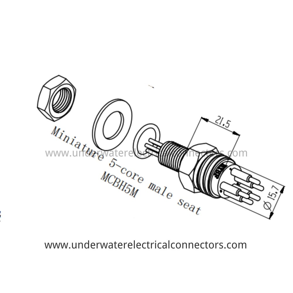 The HYSF MCBH5M is a robust 5-pin male bulkhead watertight connector designed for secure panel-mount applications in extreme underwater conditions. Widely applied in pressure housings, subsea junction boxes, ROV multi-function control systems, underwater lighting arrays, and deep-sea monitoring instruments. Constructed with 316L stainless steel or titanium options, gold-plated contacts, and neoprene overmolding, it achieves full ocean depth rating of 6000 meters (60 MPa) with IP68 sealing. High insulation resistance, low contact resistance, and proven durability guarantee superior performance in offshore oil & gas and subsea operations.
