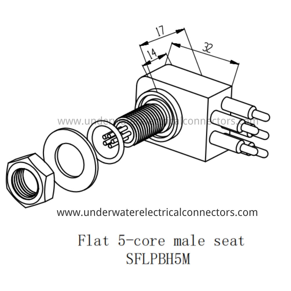 The HYSF SFLPBH5M is a rugged standard flat 5-pin male bulkhead watertight connector optimised for low-profile panel-mount through-hull installations in severe marine conditions with increased channel count. Widely applied in offshore flat panels, subsea housings, ROV multi-control junctions, underwater monitoring systems, and marine vessels. Manufactured with corrosion-resistant materials and compact flat design, it achieves superior IP68 sealing and high pressure rating for deep ocean deployments. HYSF provides reliable standard flat subsea bulkhead connectors from China.