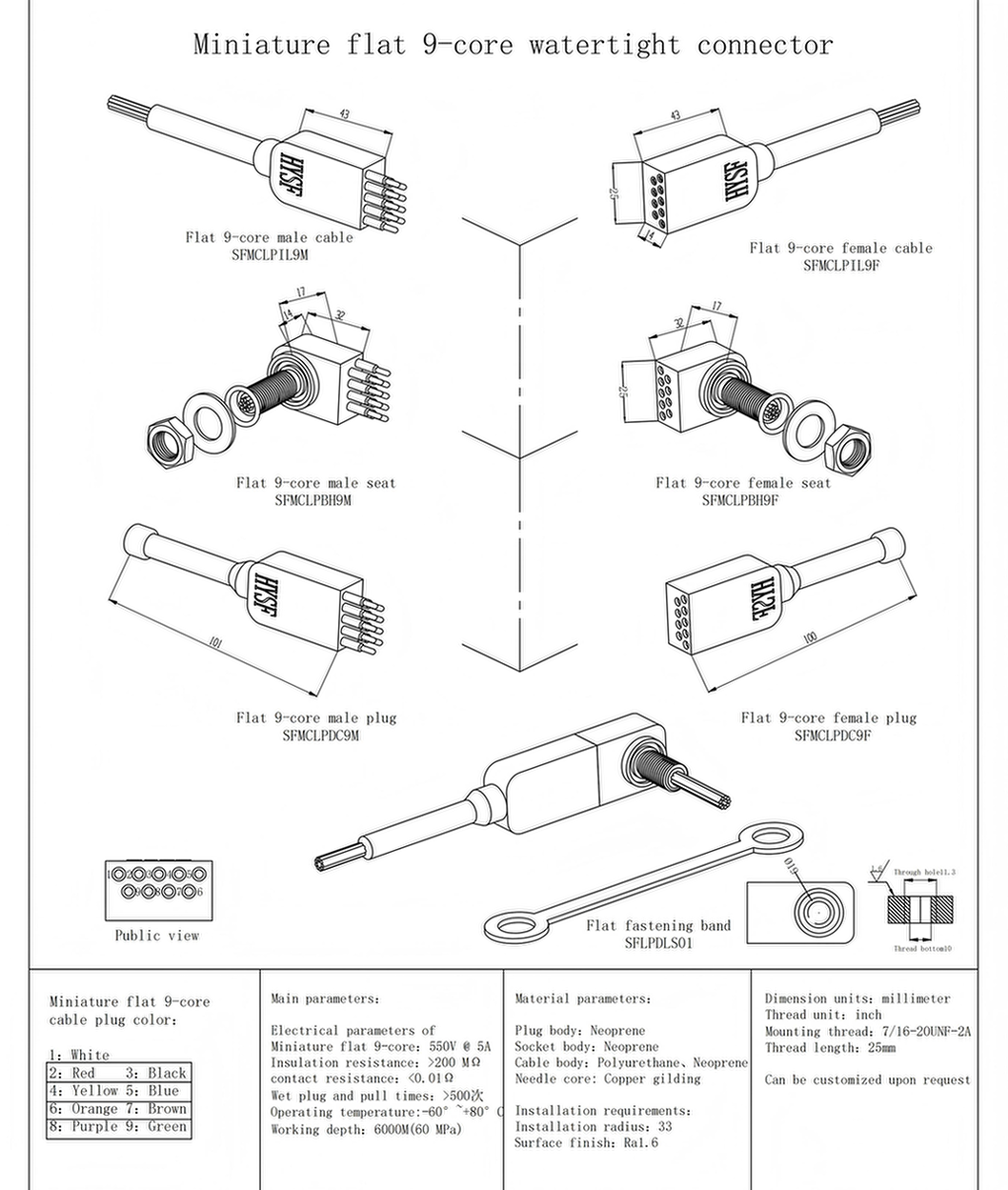 HYSF Miniature flat 9-core Cable Specifications