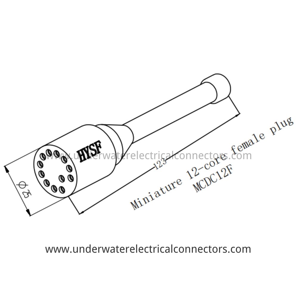 The HYSF MCDC12F is a robust 12-pin female dummy connector designed to safeguard open female receptacles from water, debris, and corrosion when disconnected. Constructed with high-quality neoprene and reliable threading, it provides complete sealing at depths up to 6000 meters (60 MPa). Critical for extending lifespan of 12-channel connectors in underwater robotics and offshore installations.
