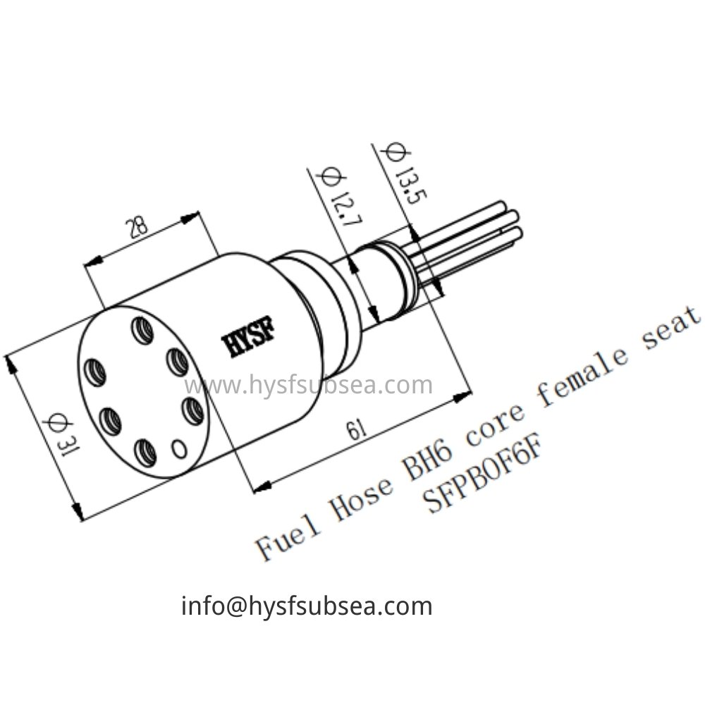 The HYSF SFPBOF6F is a robust standard 6-pin female open-face wet-mateable connector optimised for pressure-balanced subsea fuel line systems with multiple channels. Supports reliable underwater mating in oil-filled environments, perfect for deep-water ROVs, offshore multi-line hydraulics, and intervention equipment. Engineered for high reliability and full ocean depth capability with excellent corrosion protection. HYSF, leading China supplier of standard wet-mateable underwater connectors and subsea solutions.
